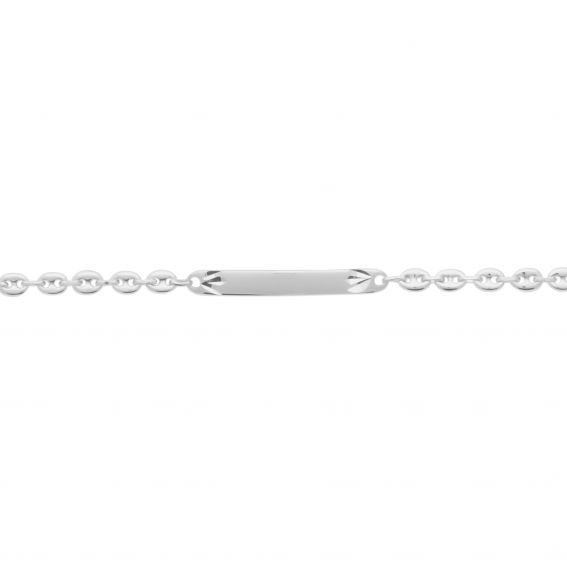 Dit gerhodineerde 925 zilveren nummer is een armband met een plaatje dat aan beide kanten gegraveerd kan worden met een voornaam en een datum. De lengte van de armband is 18cm.