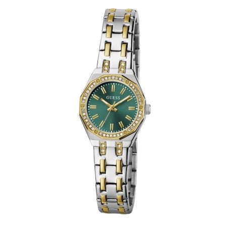 GUESS dameshorloge GW0931L8 – Tweekleurig staal met groene wijzerplaat
