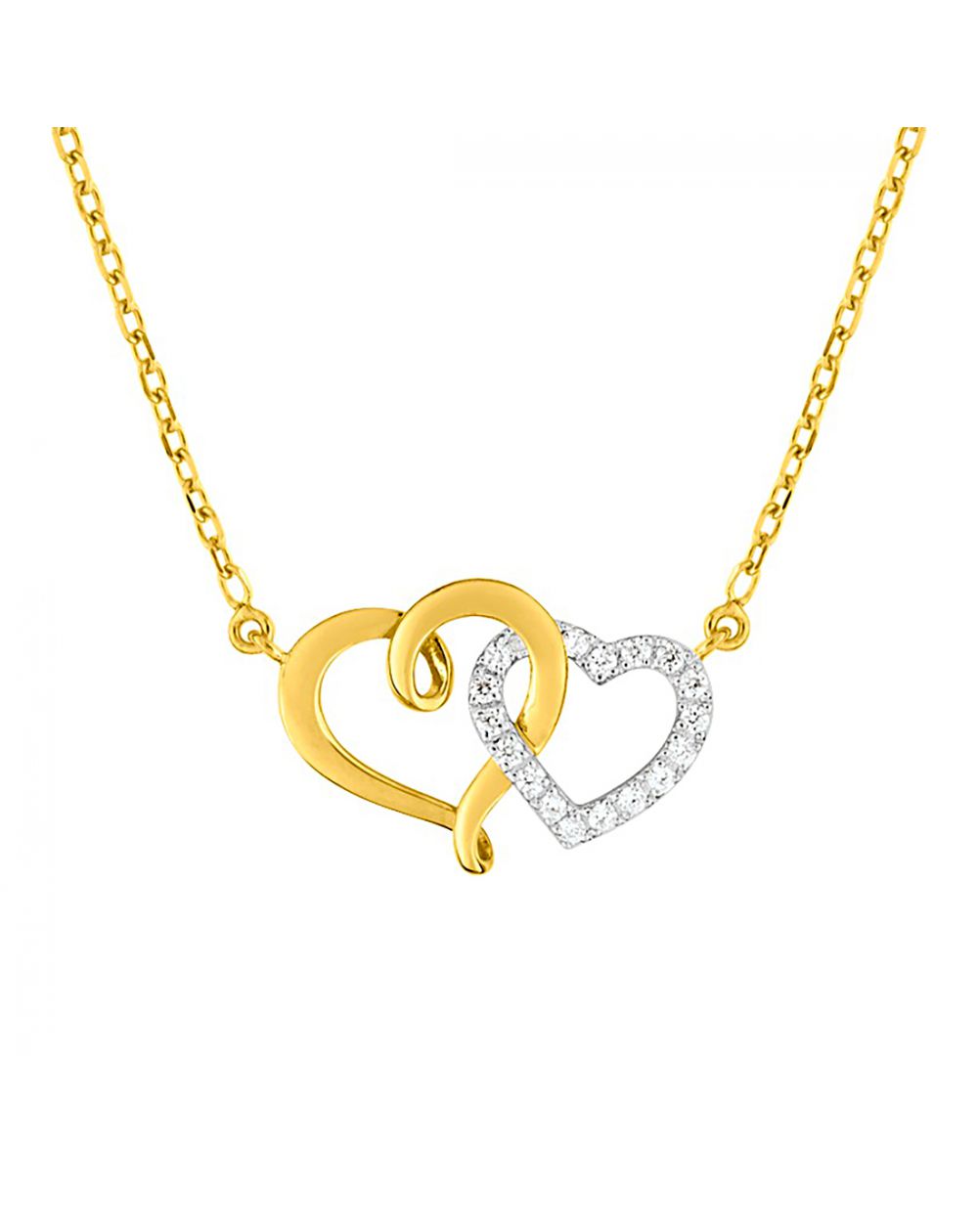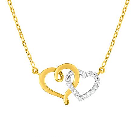 Deze gouden ketting van 9 karaat is een ketting die bestaat uit 2 harten, waarvan er één vastzit met zirkoniumoxidestenen. Deze ketting meet 42 cm en is verstelbaar bij 40 cm.