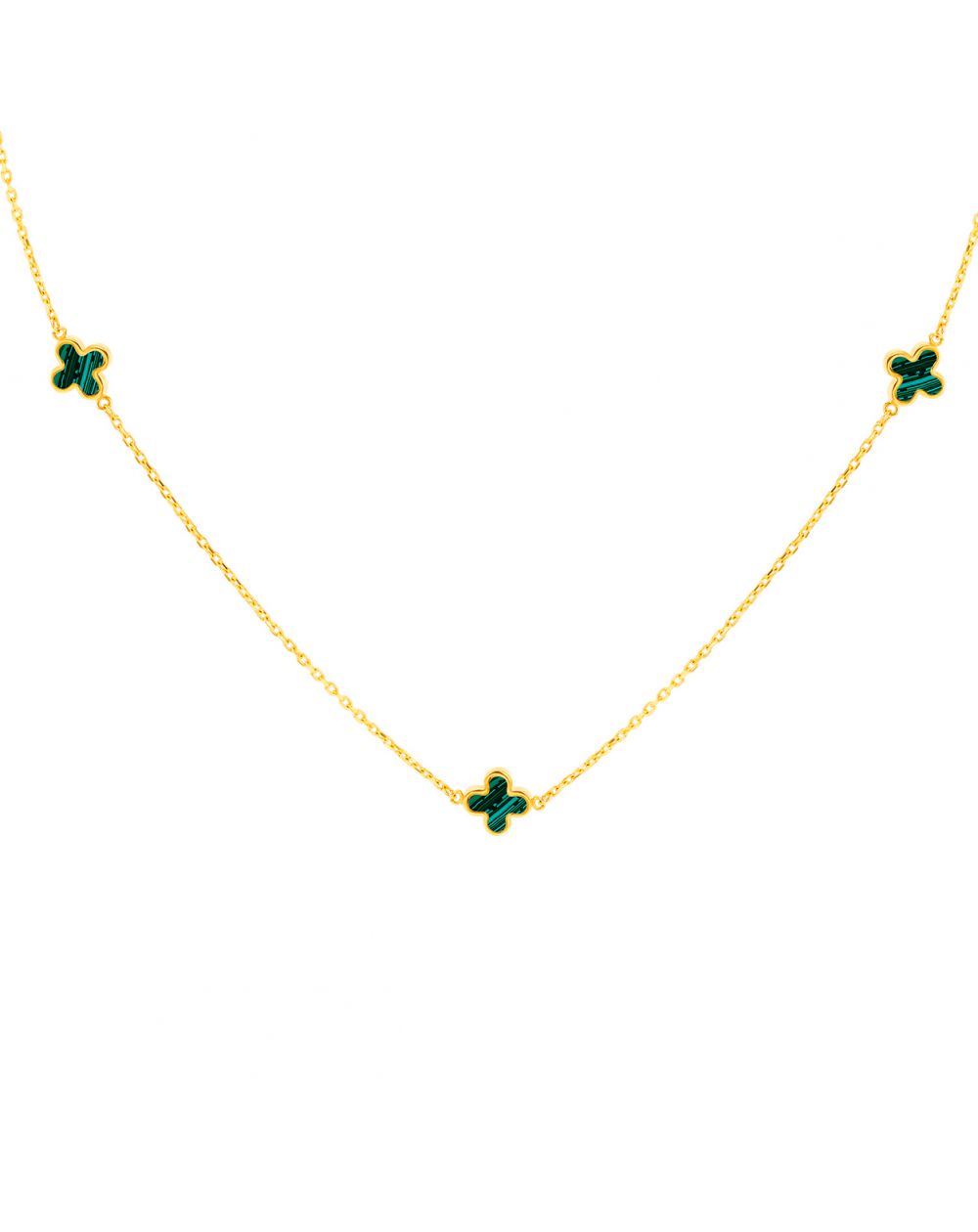 9 karaat geelgouden malachiet klaver ketting