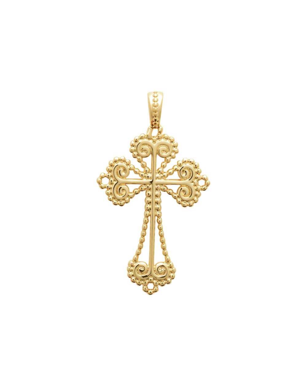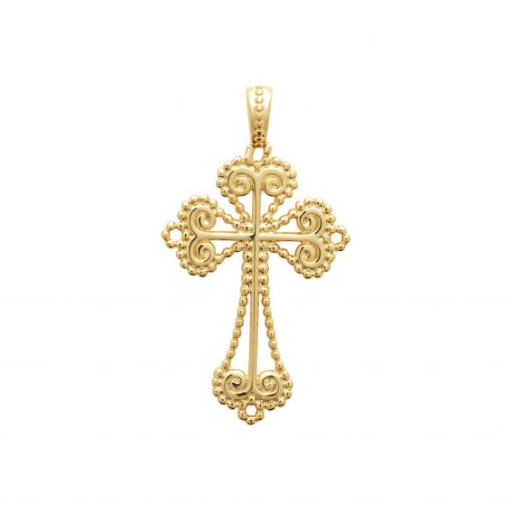Kruishanger versierd met filigrane ontwerpen voor een vleugje klassieke elegantie.