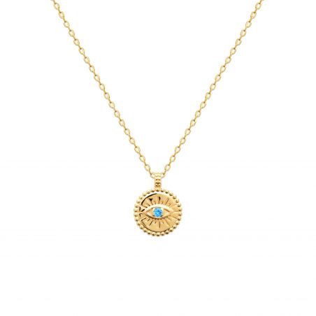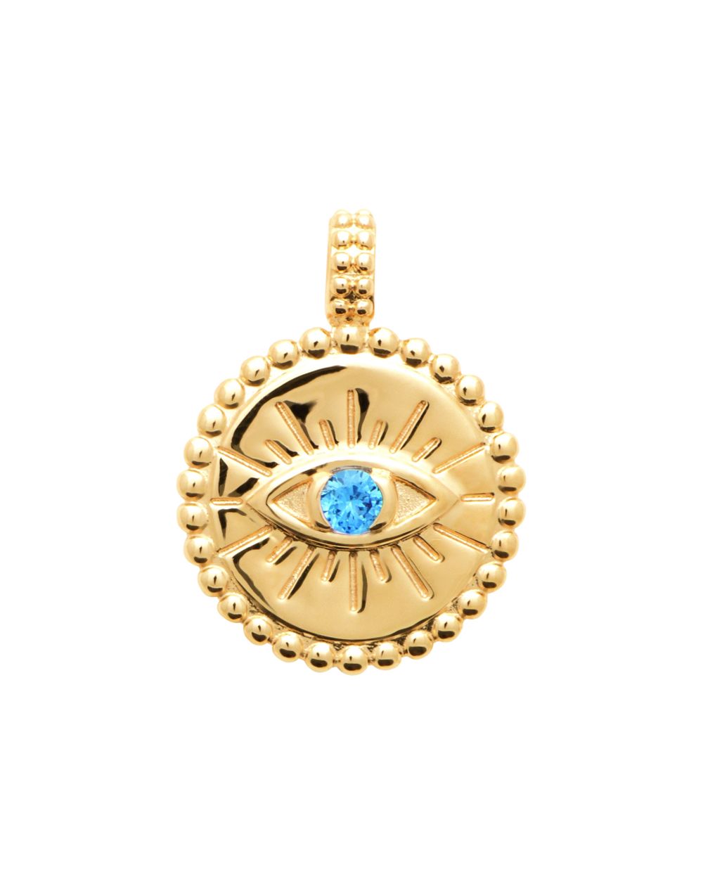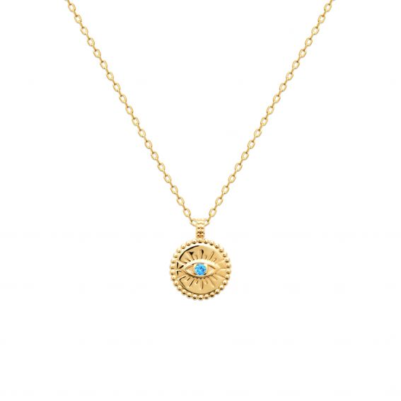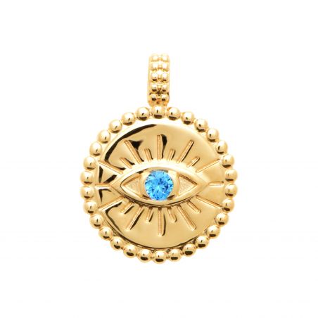 Ronde hanger met beschermend oogje met blauwe steen.