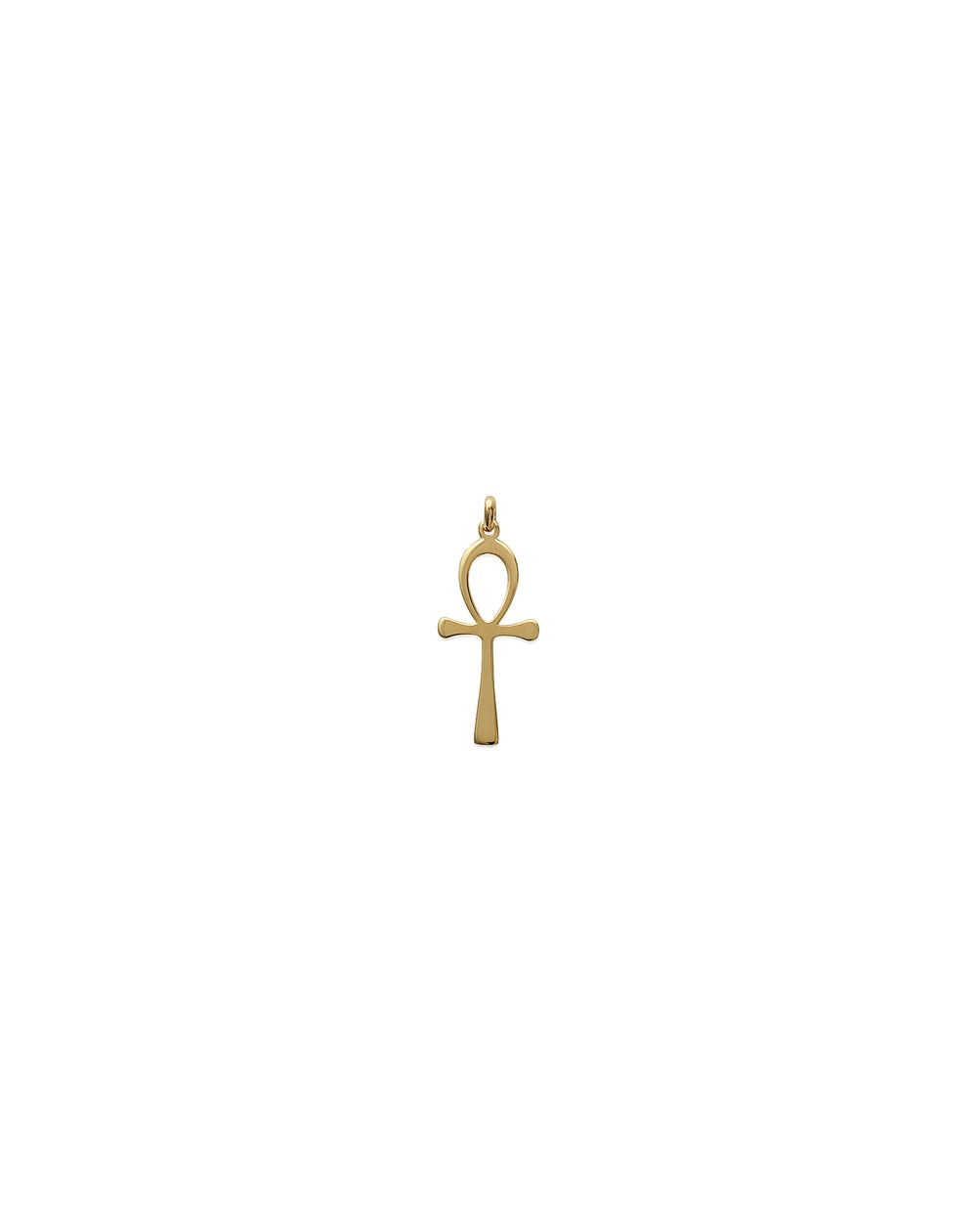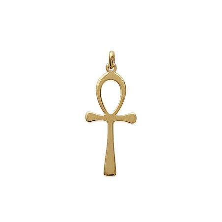 Dit stuk is een hanger met de afbeelding van de Ankh , ook wel bekend als het Kruis van het Leven in het oude Egypte. Het wordt vaak geïnterpreteerd als een symbool van het eeuwige leven. De hanger is elegant, gemaakt van verguld materiaal, waardoor hij een heldere en rijke afwerking heeft.