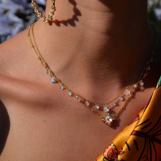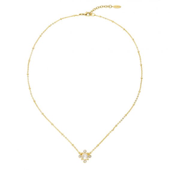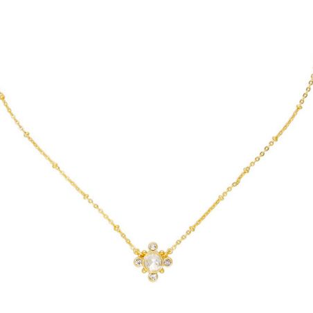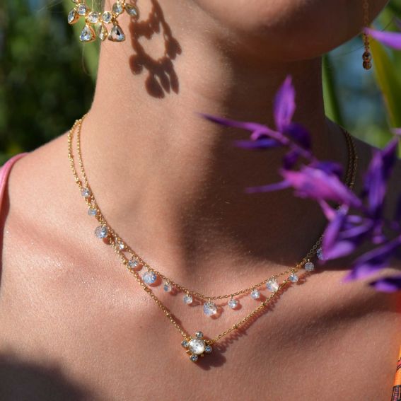 Deze ketting van het merk Hipanema is een mooie ketting gemonteerd op een rozenkransketting van messing, verguld met fijn 14-karaats goud.