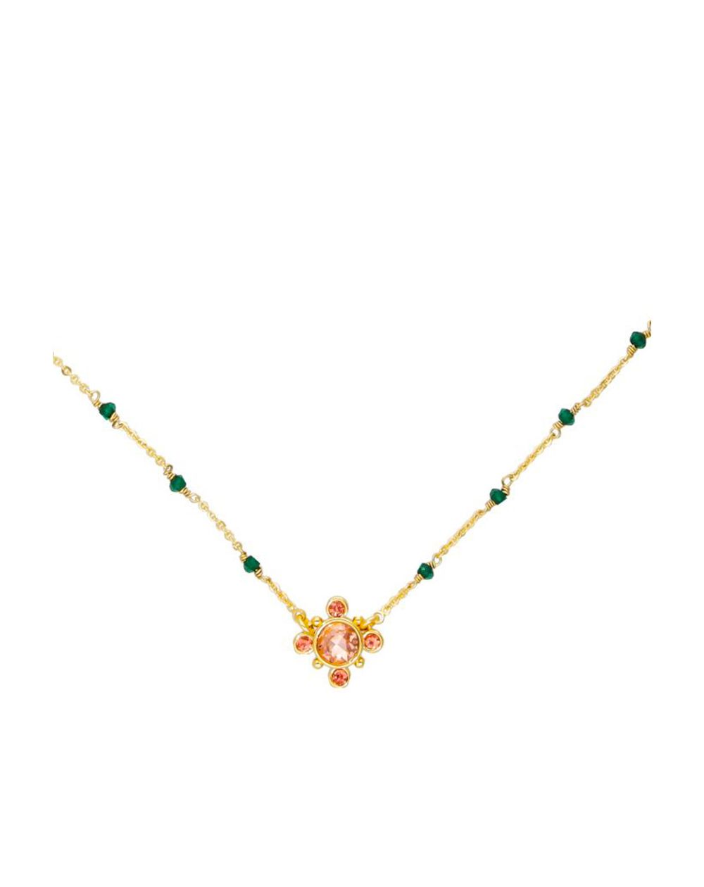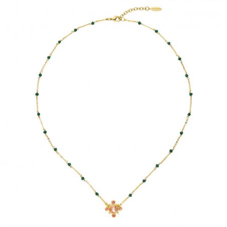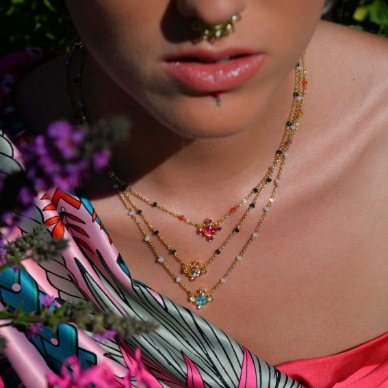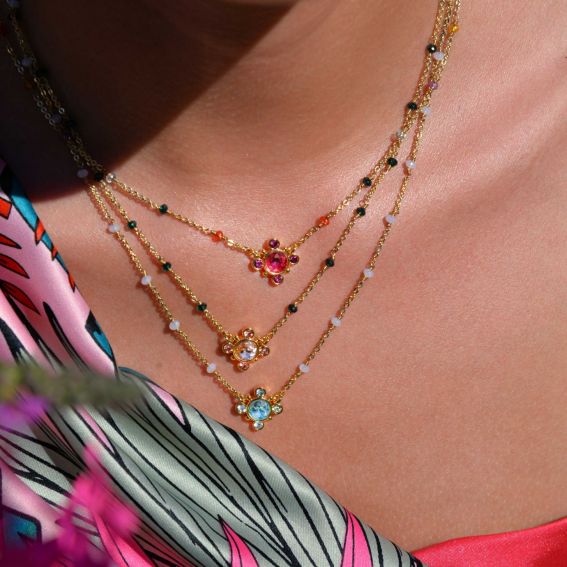 Deze ketting van het merk Hipanema is een mooie ketting gemonteerd op een rozenkransketting van messing, verguld met fijn 14-karaats goud.