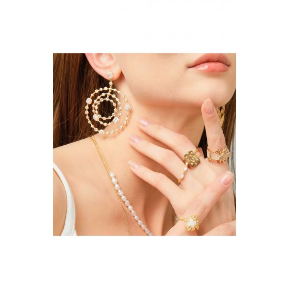 Mooie oorringen verguld met fijn goud bestaande uit drie concentrische cirkels volledig geplaveid met strass-steentjes voor een luxueus diamanteffect, gedraaid in een bohemien afwerking waar we zo dol op zijn bij Hipanema.