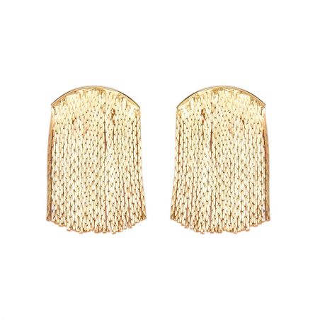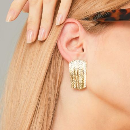 Fijne oorbellen verguld met fijn goud, met een afgeronde bovenkant van de gesp, met uitzicht op een kleine waterval van kettingen, voor een vrouwelijke en discrete look.