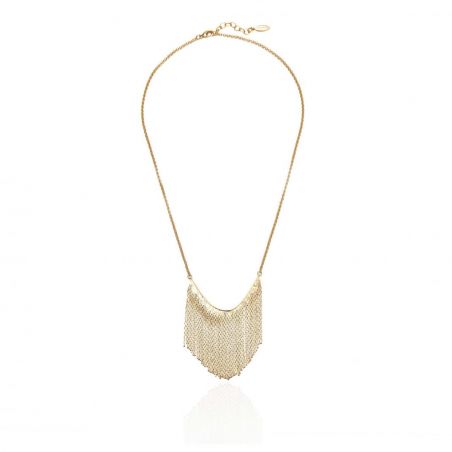 Zeer delicate ketting verguld met fijn 14-karaats goud, gemonteerd op een kabelketting van gemiddelde grootte, met een waterval van elegante fijne kettingen in het midden. Om cumulatief te dragen.