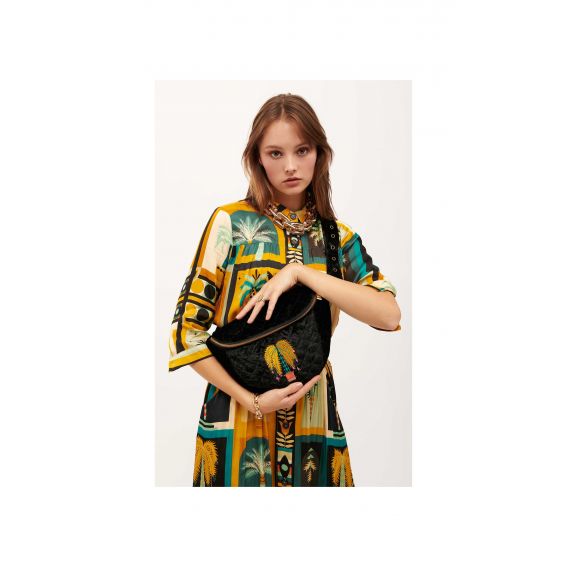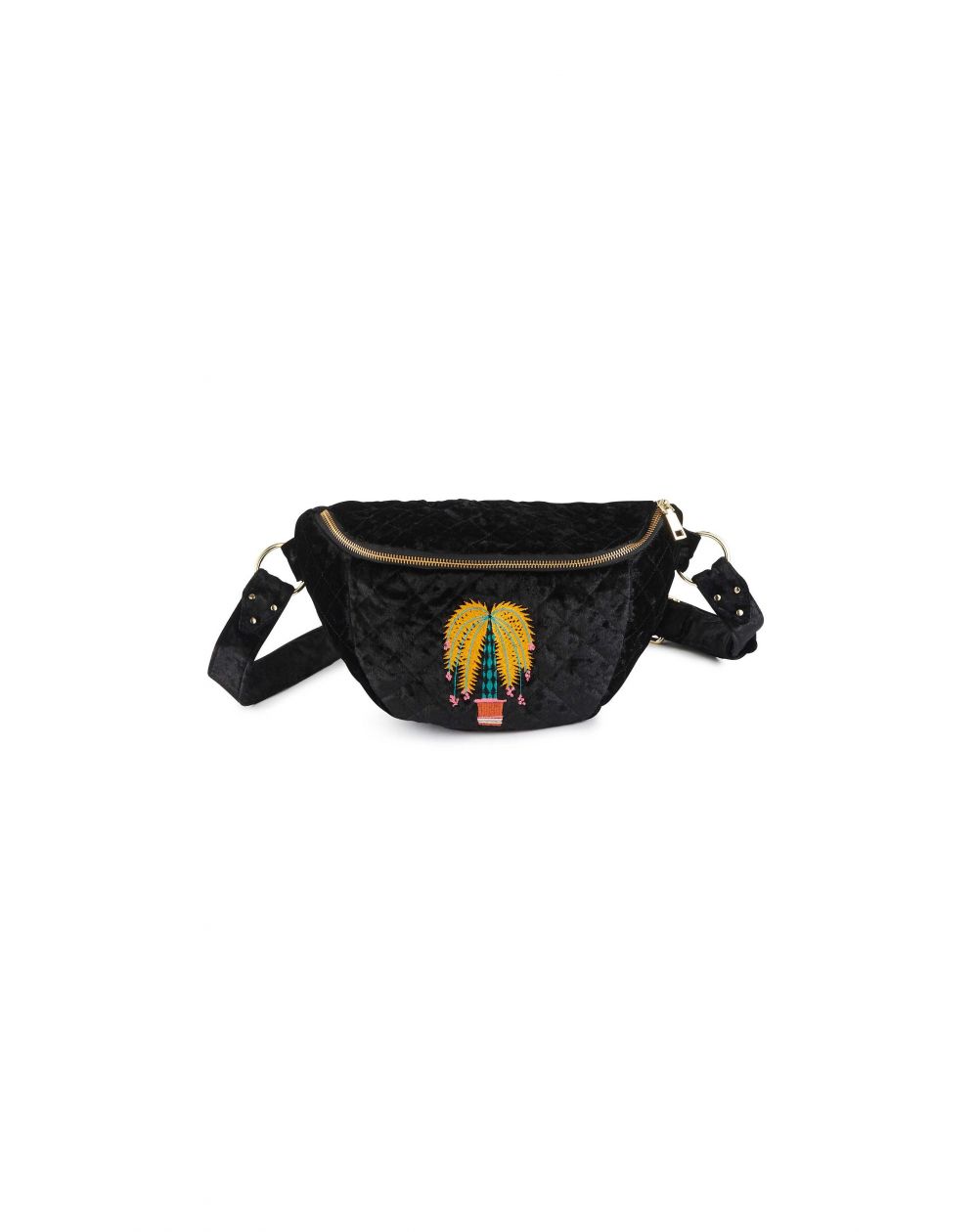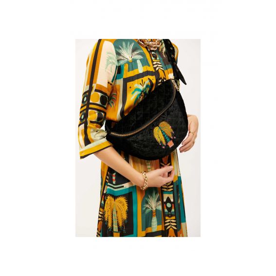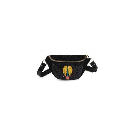 Let op, must-have accessoire! WILD herontdekt het heuptasje met zijn kleurrijke stijl, in een ultra-wenselijke gewatteerde fluwelen versie. We houden van het geborduurde palmbomen in de kleuren geel, turkoois, roze en baksteen. De contrasterende ritssluiting voegt een pop-touch toe, met een superpraktische gele ritssluiting aan de achterkant. Verkrijgbaar in twee kleuren. Het essentiële alternatief voor de klassieke handtas.