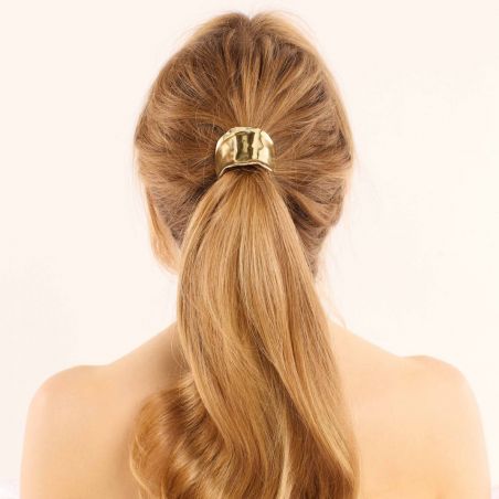 Pastore is een verfijnd elastiek, versierd met een gebogen en onregelmatig stukje koper, verguld met fijn goud. Ideaal om een paardenstaart te accentueren met een vleugje gecontroleerde gotische elegantie. Een chique en gedurfd detail dat het verschil maakt!