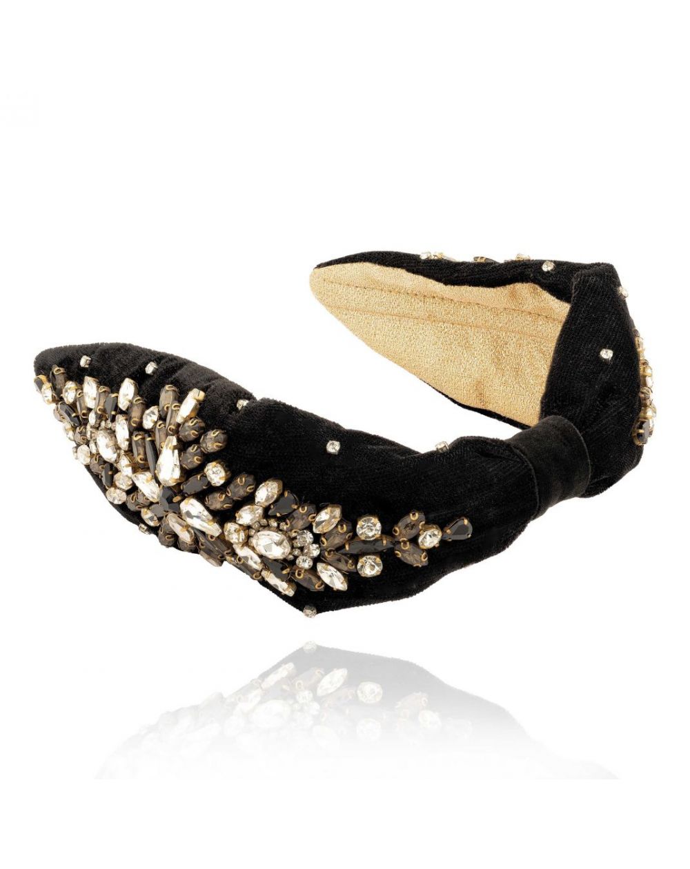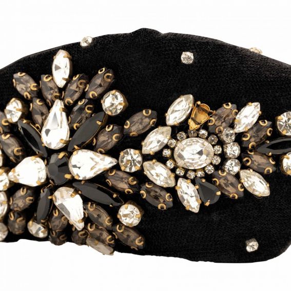 SEGOVIA , een verfijnde hoofdtooi, valt op door het zwarte fluweel met een handgeborduurd bloemenmotief van goud en parels. Een chique en stralend sieraad, ideaal om je kapsels tijdens de feestdagen te accentueren.