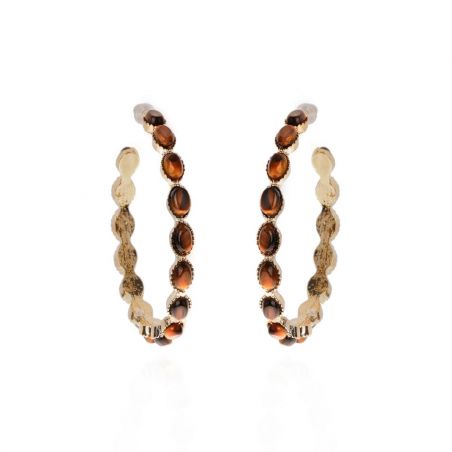 Verguld met fijn goud, zijn de HINDI creolen betoverend met hun marquise-vormige tijgeroog cabochons. Een chic en gedurfd sieraad, perfect om de winter karaktervol op te fleuren.