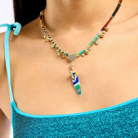 Kleurrijk, levendig en expressief: ADASSA is de perfecte bohemian ketting voor een festival, strand of zomeravond . Het siert de halslijn met karakter en transformeert een eenvoudige outfit in een opvallend silhouet.