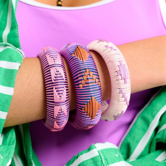 Deze bohemian lila armband voor dames betovert met zijn zachte tint en uitgesproken karakter. Alleen gedragen, omlijst hij elegant de pols. Gecombineerd met andere armbanden vormt hij een ware fashion statement voor het lente/zomerseizoen van 2026.