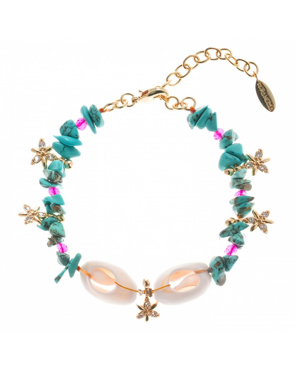 Deze turquoise schelparmband voor dames is ideaal om een zomeroutfit, een zwierige jurk of een chique strandlook compleet te maken. Verkrijgbaar in drie kleuren – wit, koraal en turquoise – kan hij alleen gedragen worden of gecombineerd met andere armbanden voor een nog opvallendere stijl.