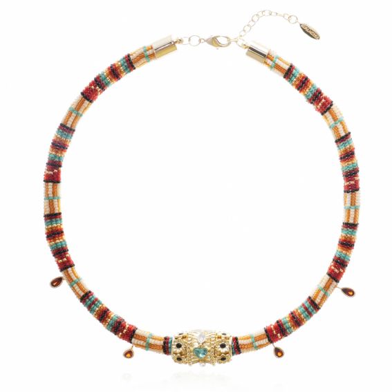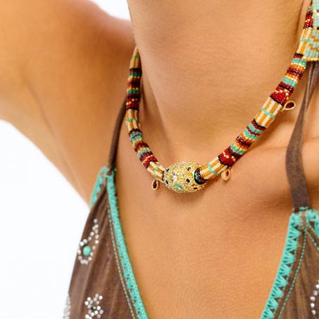 De gedurfde en verfijnde Hipanema POLINA Turquoise-ketting belichaamt perfect het DNA van het merk: een subtiele balans tussen nauwgezet vakmanschap en hedendaagse barokke inspiratie. Dit ware statement-stuk trekt direct de aandacht met zijn rijke details en intense kleuren.