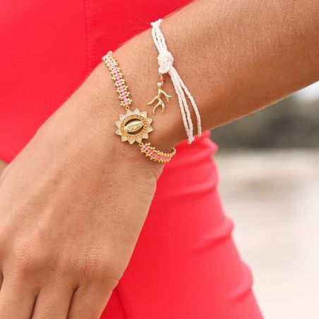 De delicate en stralende JOLYNE Rose armband van Hipanema belichaamt de gelukbrengende geest die zo kenmerkend is voor het merk. Hipanema heeft polsen altijd versierd met kostbare bedeltjes; JOLYNE is de meest verfijnde uitdrukking daarvan.