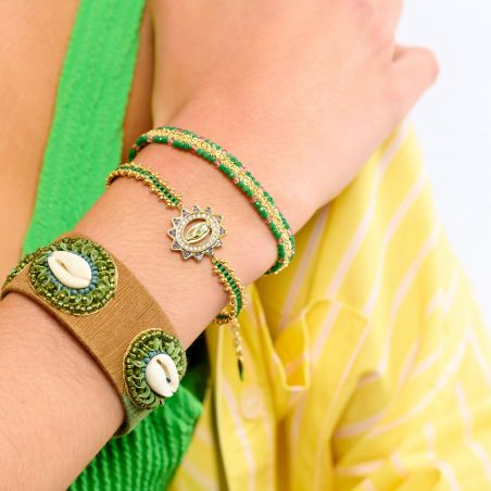 Intens en symbolisch, de Hipanema JOLYNE Green armband belichaamt de iconische geluksbrenger van het merk. Verfijnd en stralend, siert hij de pols met een kostbare en spirituele uitstraling.