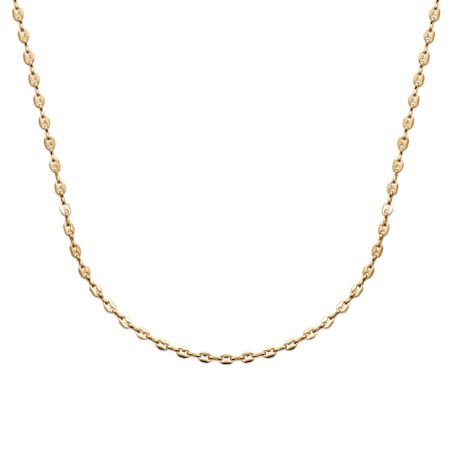 Deze 18 karaats vergulde ketting is een koffieboon schakelketting verkrijgbaar in verschillende breedtes.