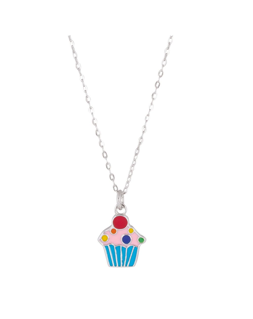 Deze damesketting is een geëmailleerde cupcakevormige ketting.