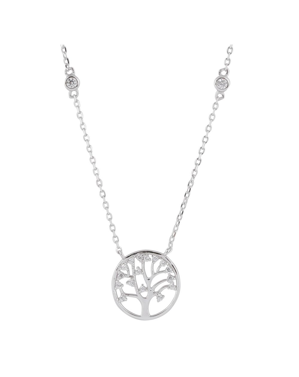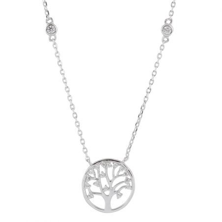 Deze 925 zilveren ketting is een ketting met een levensboom en kleine steentjes langs de ketting. De cirkel met de levensboom heeft een diameter van 13 mm.