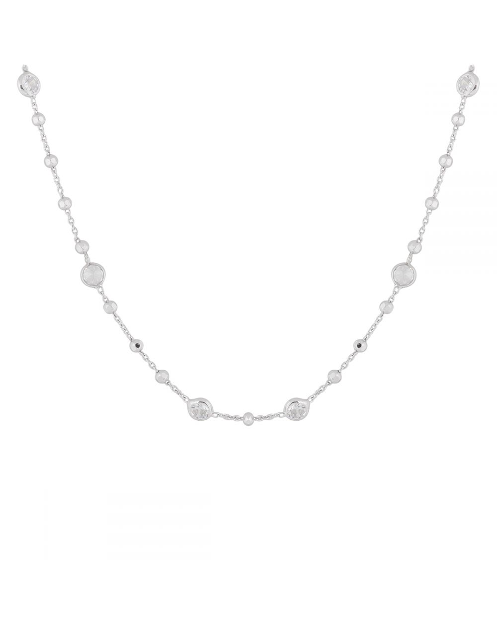 deze 925 zilveren ketting is verstelbaar van 40 cm tot 43 cm, hij is samengesteld uit kralen en 6 gesloten zirkonen