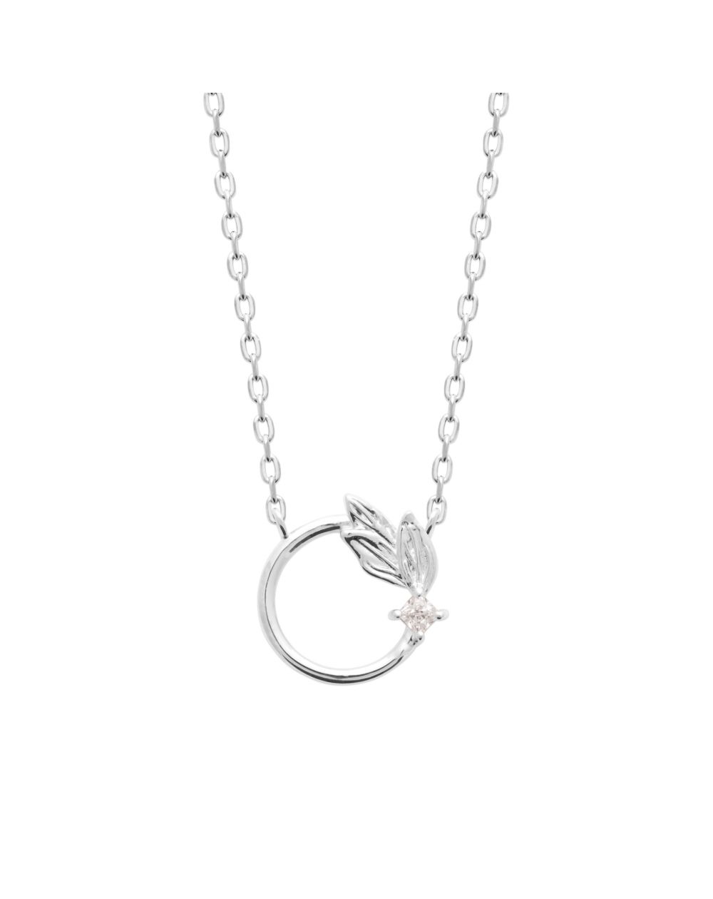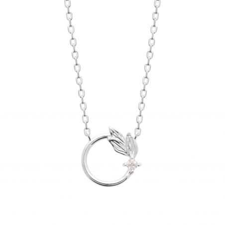 Halsketting met open schijf, bladeren en een zirkoon in 925 zilver