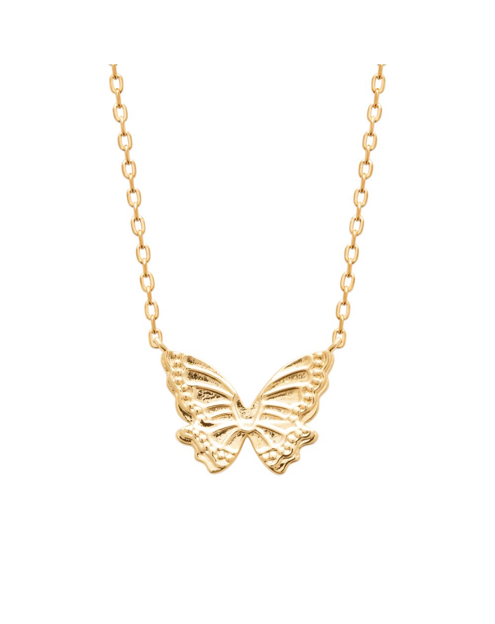 Deze ketting is een 18k vergulde ketting met een vlinder.