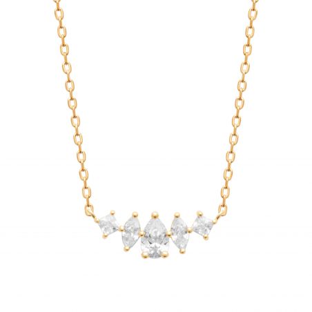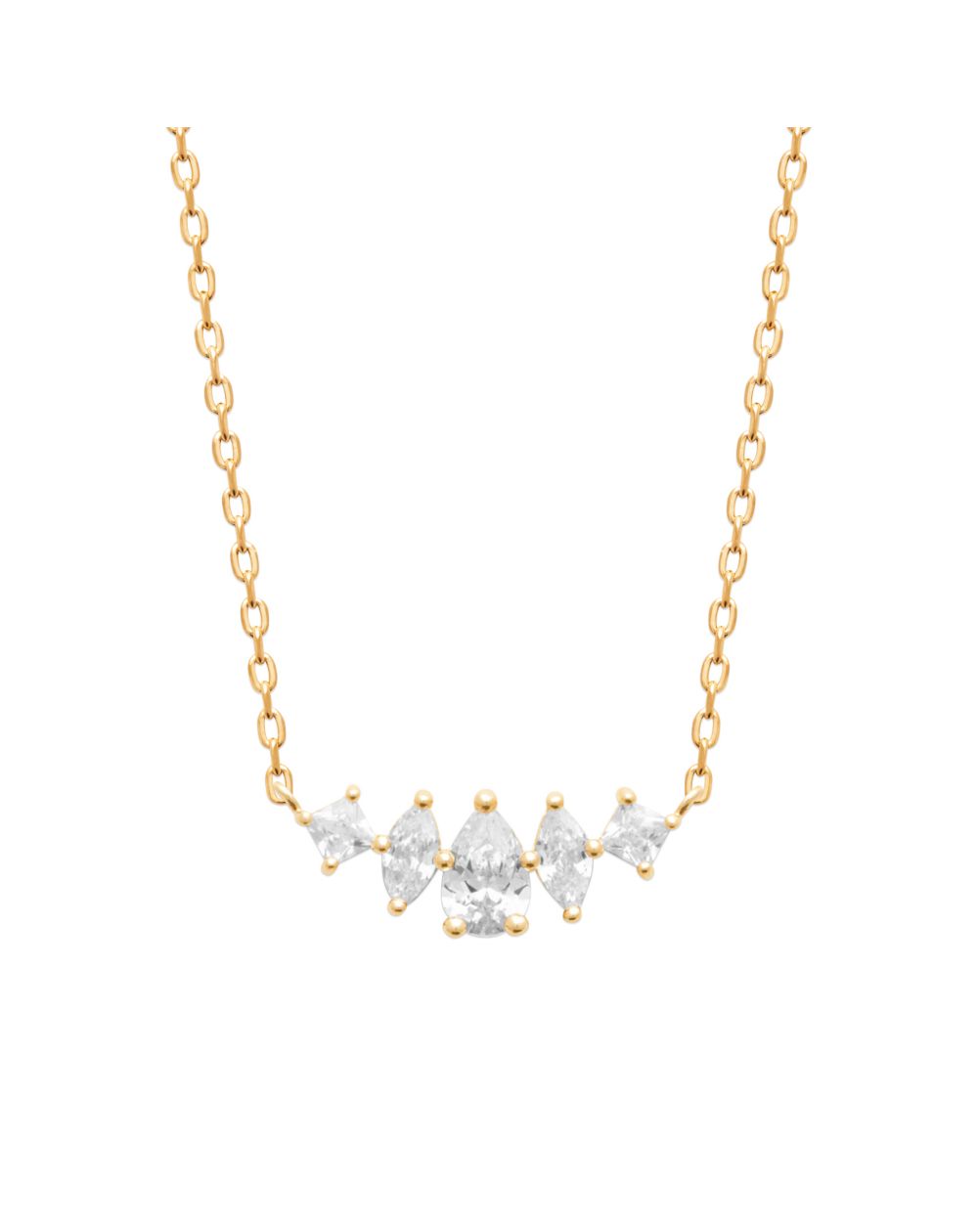 Deze ketting is een 18k vergulde ketting, in lengte verstelbaar. deze ketting is opgebouwd uit een boog van zirkoniums.