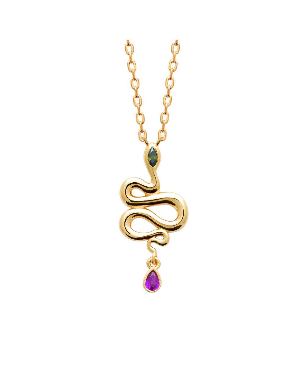 Deze ketting is een 18k vergulde ketting, in lengte verstelbaar. deze ketting bestaat uit een slang en gekleurde stenen