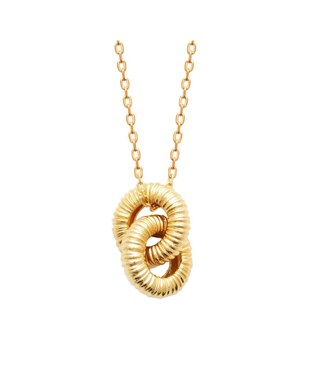 Deze ketting is een 18k vergulde ketting, in lengte verstelbaar, met twee geribbelde schijven.