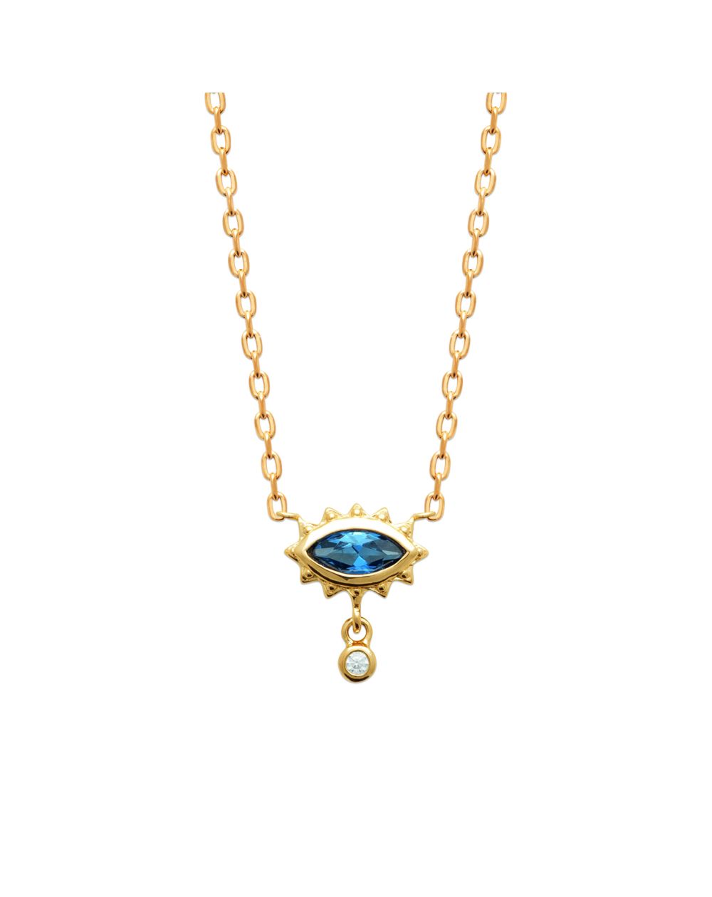 Deze ketting is een 18k vergulde ketting, in lengte verstelbaar. Deze ketting bestaat uit een oogvormige hanger.