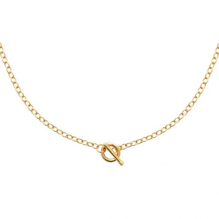 Ontdek onze sublieme gouden damesketting , een delicaat en tijdloos sieraad dat een vleugje verfijning aan al je outfits zal toevoegen. Dit unieke stuk, gemaakt in 18K verguld, verleidt door zijn verfijnde ontwerp en zijn T-bar sluiting, een moderne en elegante toets die deze ketting tot een must-have in je sieradencollectie maakt.
