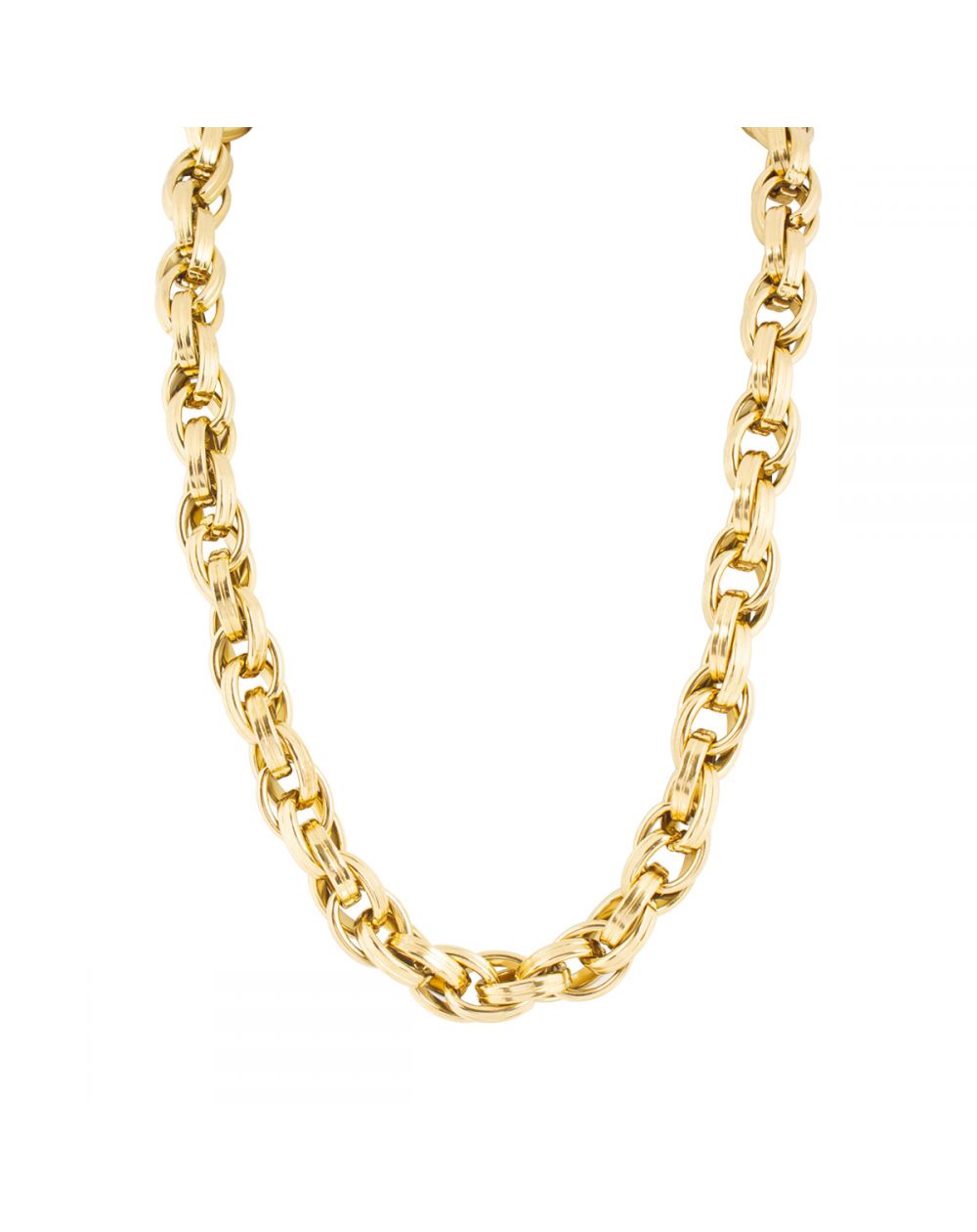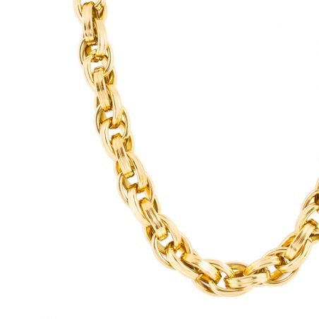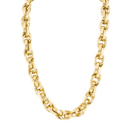Deze damesketting is een grote, vergulde stalen ketting met een breedte van 12 mm. Deze ketting is in lengte verstelbaar van 45 tot 50 cm.