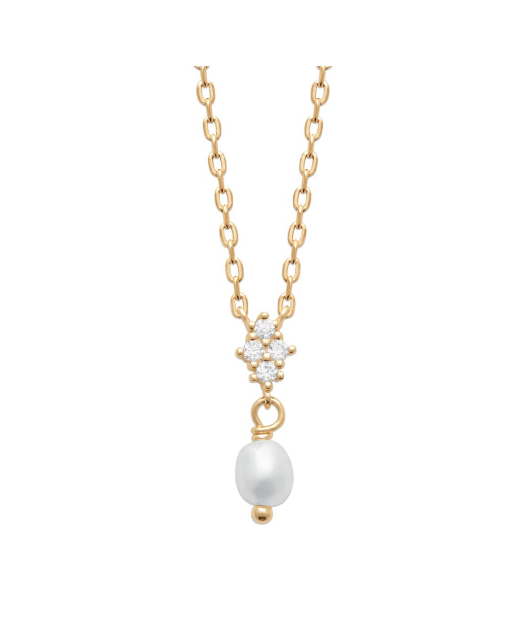 Deze parel- en stenenketting voor dames is een 18-karaats vergulde ketting met een gekweekte parel, bezet met zirkoniumoxidestenen. Deze ketting is in lengte verstelbaar van 42 tot 45 cm.