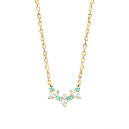 Deze halsketting, vervaardigd uit 18-karaats verguld goud , voegt een kostbare en verfijnde touch toe aan de hals. Het lichte en evenwichtige ontwerp maakt het een ideaal sieraad voor dagelijks gebruik, maar is tegelijkertijd elegant genoeg om een feestelijke outfit of een speciale gelegenheid compleet te maken.