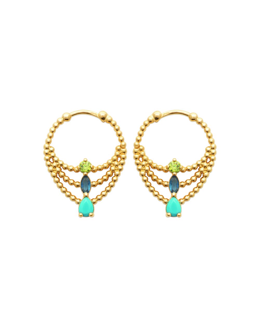 De Calyra-oorringen betoveren met hun stralende elegantie en subtiele kleurnuances.