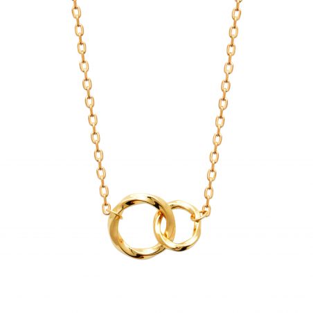 De elegante en symbolische Duo Élora vergulde halsketting belichaamt verbondenheid en kostbare banden. De hanger, bestaande uit twee in elkaar verstrengelde ringen, weerspiegelt harmonie, liefde of vriendschap, waardoor het een werkelijk betekenisvol sieraad is.