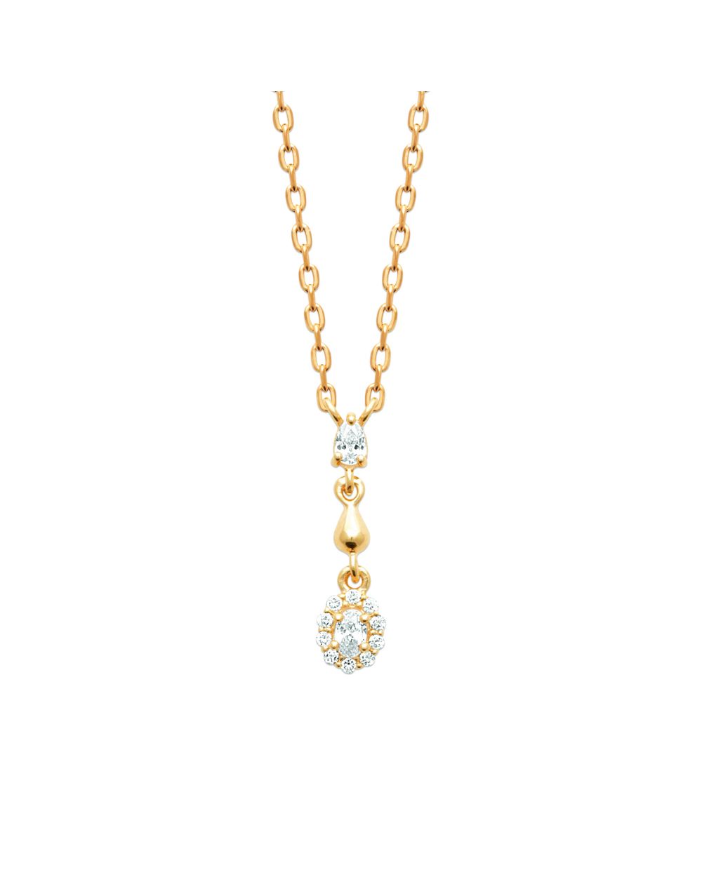 Voeg een vleugje glans toe aan je outfit met de vergulde Élina Éclat-halsketting . Dit verfijnde sieraad onderscheidt zich door de delicate hanger, bestaande uit een centrale steen omringd door een fonkelende halo , die aan een fijne, elegante ketting hangt.