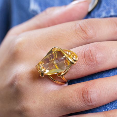 De steen is een Swarovski-kristal van 18 mm hoog en 13 mm breed . Deze ring is gemakkelijk verstelbaar en past zich aan de maat van je vinger aan.