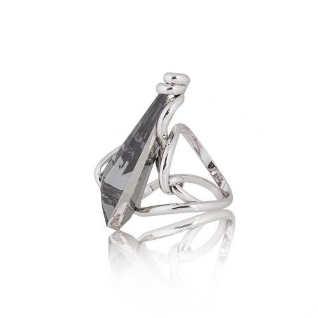 La pierre est un cristal Swarovski mesurant 38mm de haut. Cette bague est facilement réglable et s'adapte à la taille de votre doigt.