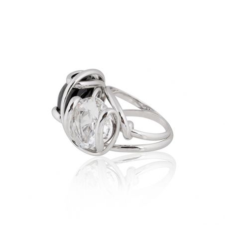 La pierre est un cristal Swarovski mesurant 38mm de haut. Cette bague est facilement réglable et s'adapte à la taille de votre doigt.