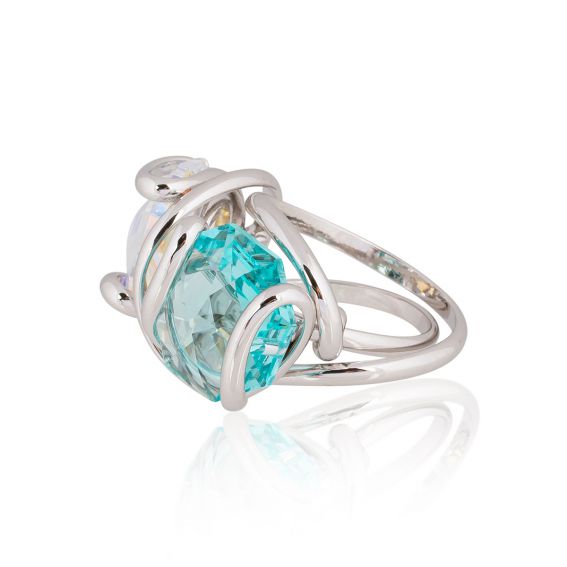 La pierre est un cristal Swarovski mesurant 38mm de haut. Cette bague est facilement réglable et s'adapte à la taille de votre doigt.