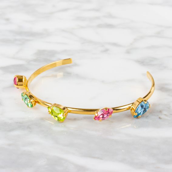 De stenen zijn Swarovski kristallen . Deze armband is eenvoudig verstelbaar en past zich aan de maat van je pols aan.