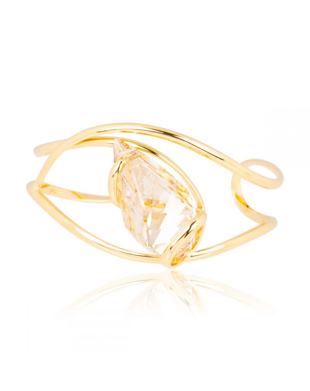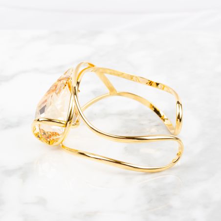 De steen is een Golden Shadow gekleurd Swarovski kristal van 31 mm hoog . Deze Marazzini-armband maakt deel uit van de Helix-collectie. Het is gemakkelijk verstelbaar en past zich aan de grootte van uw pols aan.