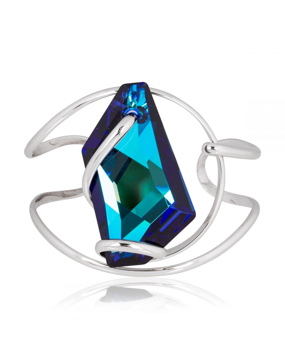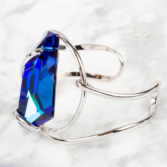De steen is een Swarovski kristal in nachtblauw ( Bermuda Blue ) van 47 mm hoog . Deze armband uit de collectie "De Art" is gemakkelijk verstelbaar en past zich aan de maat van jouw pols aan.