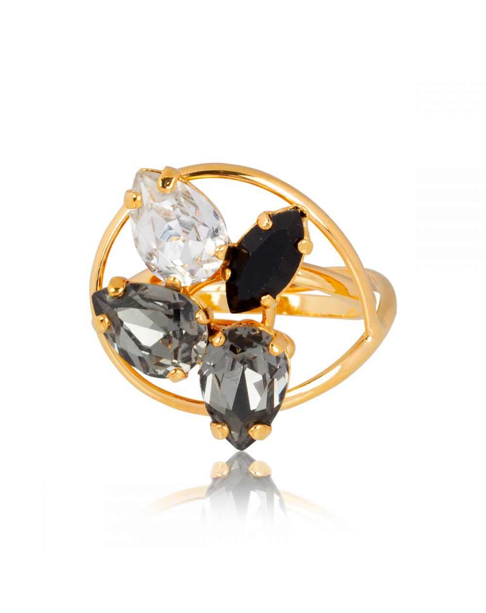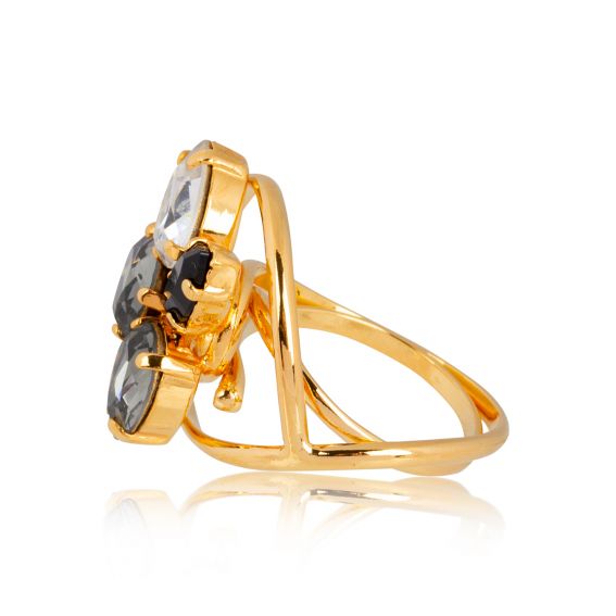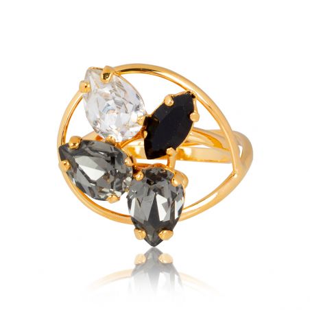 De stenen zijn Swarovski kristallen . Deze ring is eenvoudig verstelbaar en past zich aan de maat van uw vinger aan.