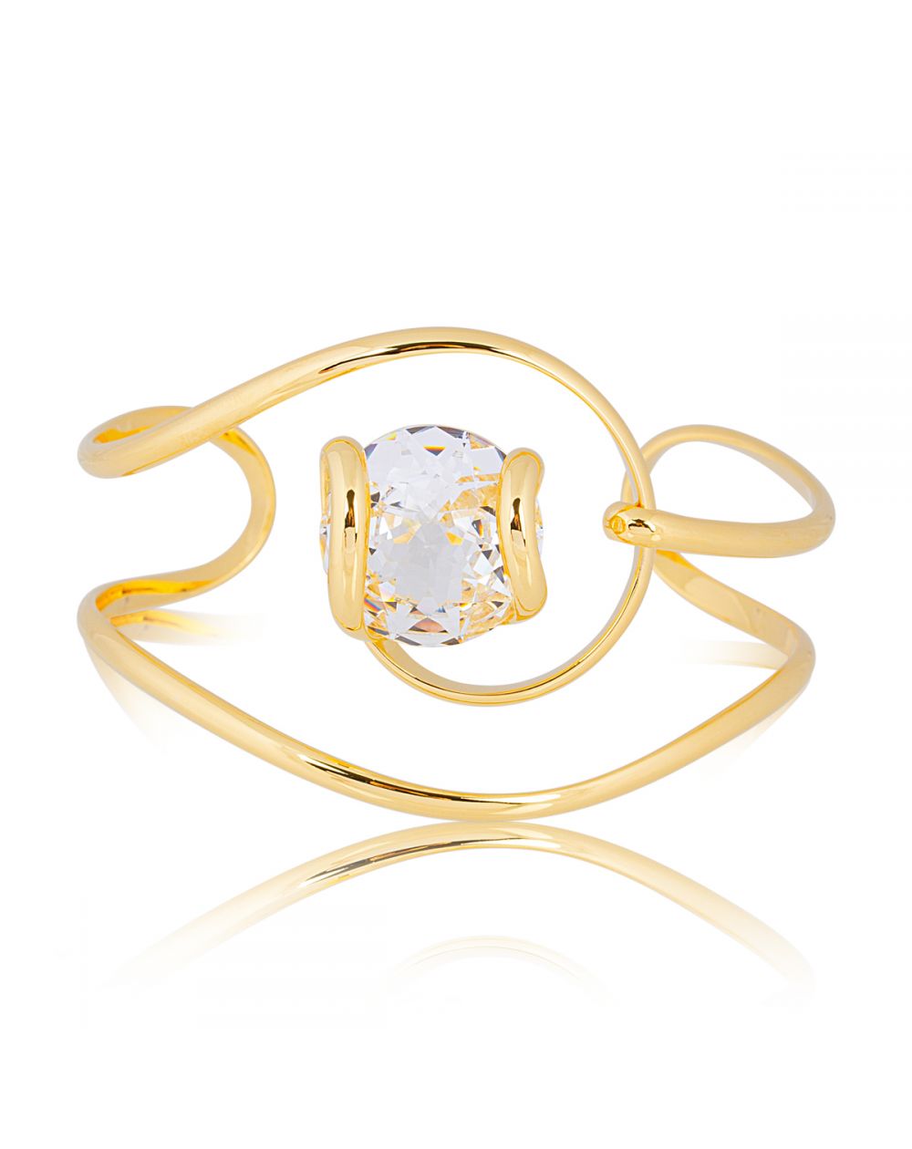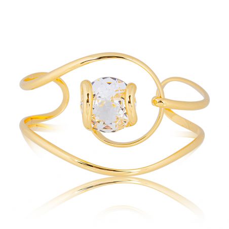 Het bestaat uit een gebogen Swarovski-kristal van 18 mm aan elke kant . Deze armband is eenvoudig verstelbaar en past zich aan de maat van uw pols aan.