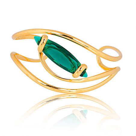 Het is gemaakt van Swarovski-kristallen, waaronder een amandelvormig exemplaar van 35 mm lang . Deze armband is eenvoudig verstelbaar en past zich aan de maat van uw pols aan.
