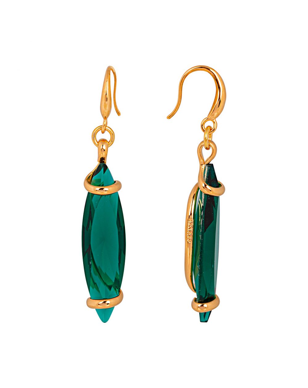 Gouden oorbellen Marazzini Swarovski kristal Navette smaragd